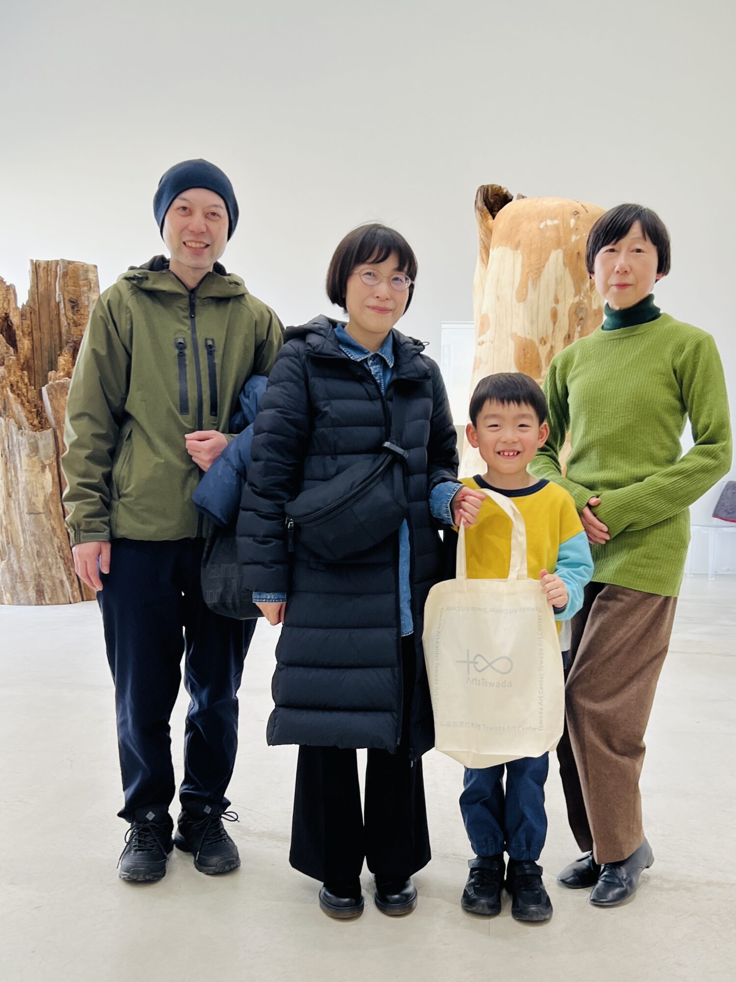 記念セレモニーでは、十和田市現代美術館 館長 四方幸子より記念品(「国松希根太 連鎖する息吹」展カタログ、限定スイーツ・ドリンク引換券、十和田市現代美術館招待券ペア1組、美術館オリジナルグッズ)をプレゼント。